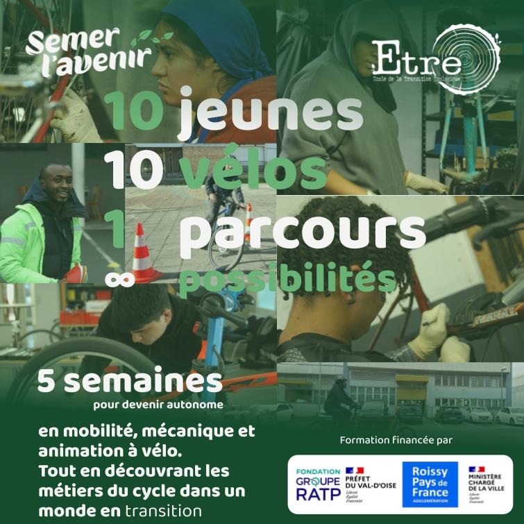 En 2021, Semer l’avenir s’implante sur le territoire de l’Agglomération Roissy-Pays-de-France (Val d’Oise) afin de proposer des parcours de formation aux métiers manuels de la transition écologique. Soutenu par le réseau ETRE, Semer l’avenir porte l’école de la transition écologique du Val d’Oise. Notre association permet aux personnes éloignées de l’emploi et de la formation de découvrir et d’apprendre de nouveaux métiers.